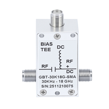Módulo RF IC SMA Bias Tee, Rango de Frecuencia de 30 KHz a 18 GHz, 500 mA, 50 Voltios CC, VSWR <1.5, Impedancia de 50 Ohmios
